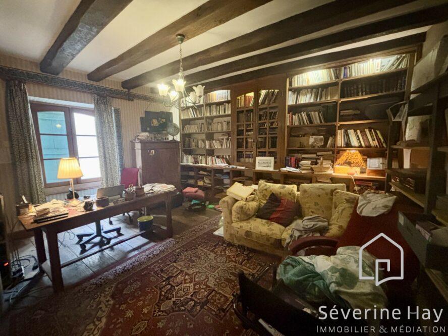 - un grand bureau avec bibliothèque, parquet en chêne et cheminée