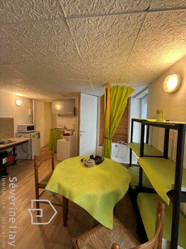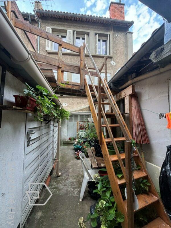 * Au fond de la cour, on retrouve le deuxième corps de bâtiment dans le prolongement du premier corps de bâtiment au rez-de-chaussée, une des deux chambres du logement du rez-de-chaussée, ainsi qu’un accès à l’étage à un studio d’environ 22 m² chauffé par un convecteur électrique. DPE classé E en 2024.