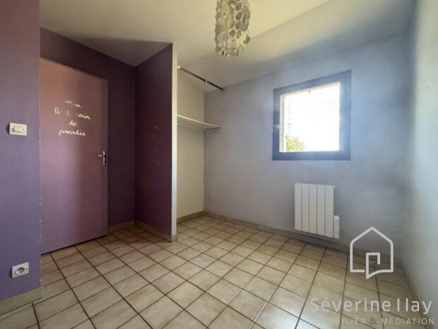 À l’étage : petite salle d’eau, débarras de 6 m² et deux espaces nuit (moins de 8 m²).